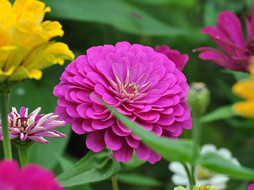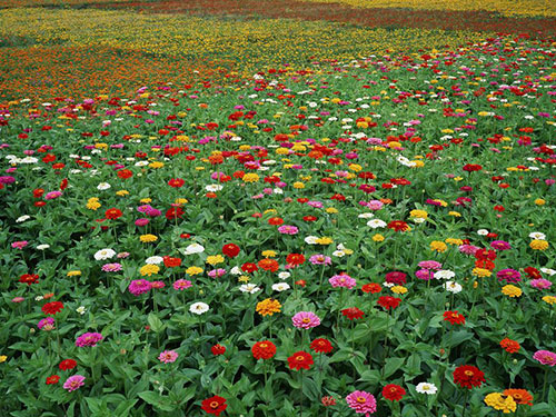 百日草,一年生草本植物。侧枝呈杈状分枝。夏秋开花,头状花序单生枝顶,花径约10厘米,花瓣颜色多样,花期长,花型变化多端,基本上都是重瓣种。